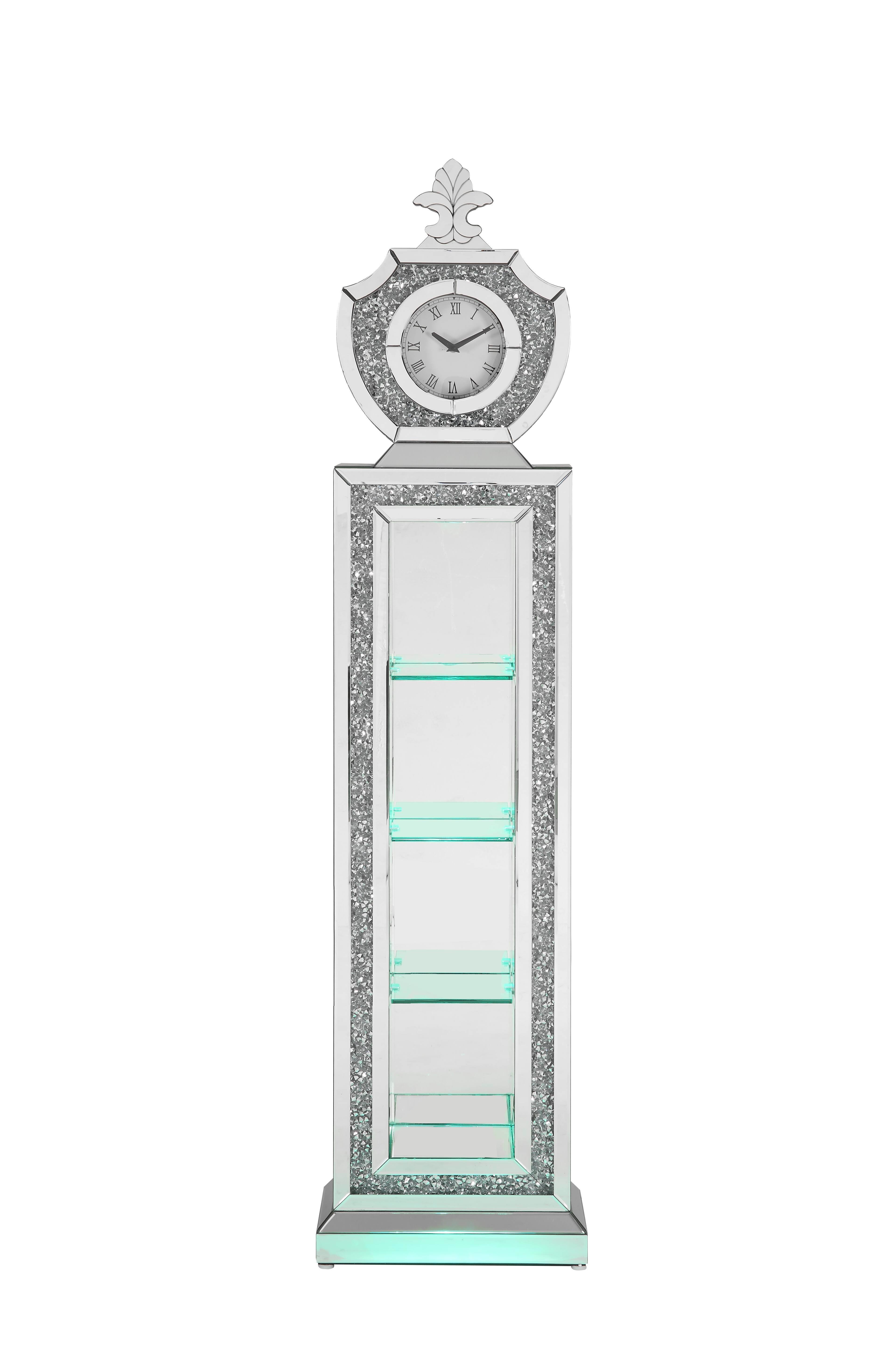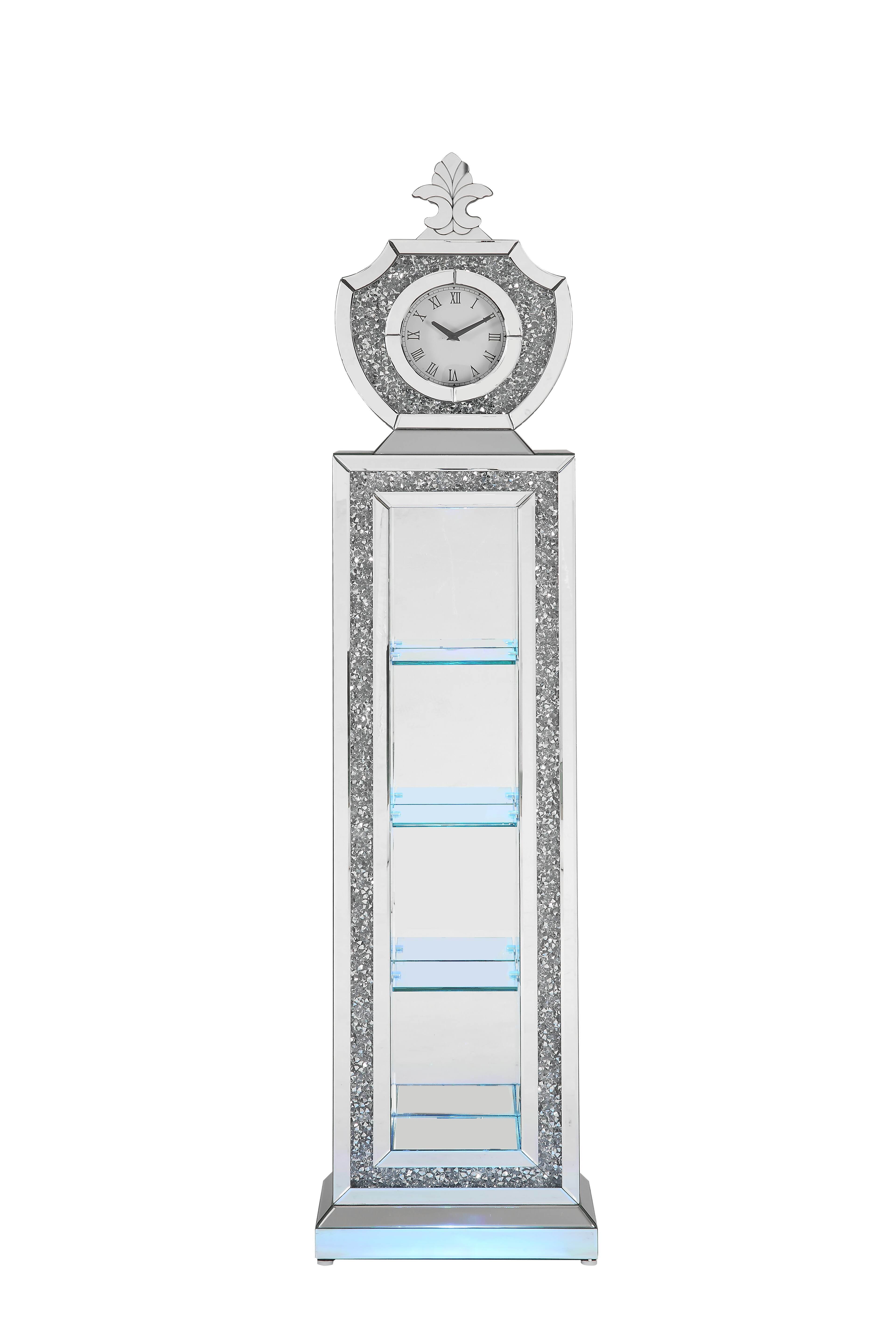 ACME Noralie GRANDFATHER CLOCK W/LED Mirrored & Faux Diamonds AC00351