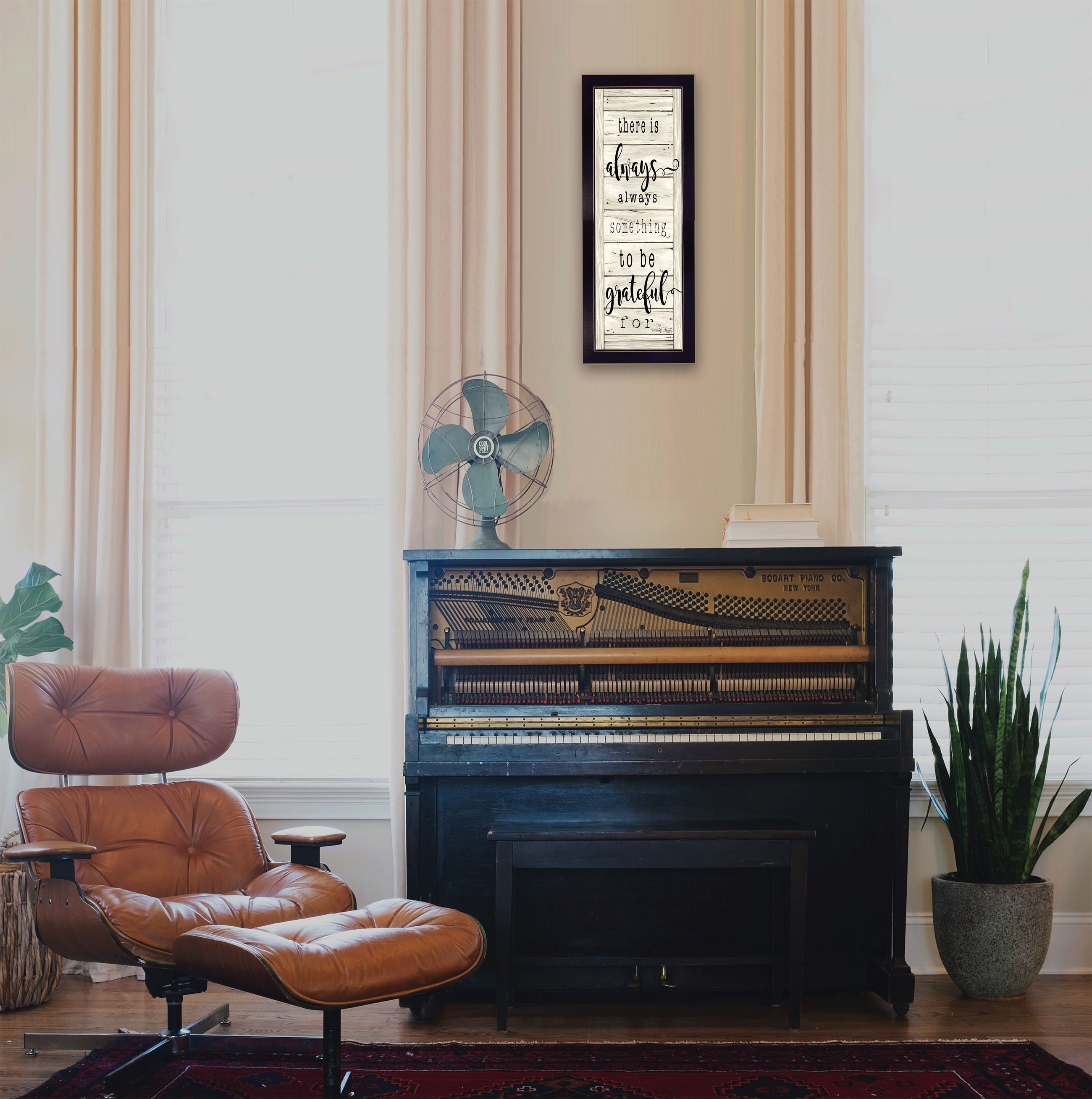 Be Grateful- 10x26 framed print in a decorative black frame by artisan Cindy Jacobs•Women Owned (WBE)•Textured Artwork with a 'rolled on' acid free acrylic coating to create a canvas painting effect. No glass is necessary.•UV protectant coating protects artwork from fading.•Arrives Ready to Hang