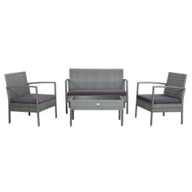 4 Pieces Patio Furniture Set, PE Rattan Wicker 4 Pcs Outdoor Sofa Set w/Washable Cushion and Tempered Glass Tabletop (Color: as Pic)