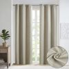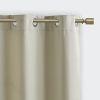 DescriptionCreate the perfect look in your home with the SunSmart Taren Blackout Triple Weave Panel Pair. This solid beige window panel pair features a triple weave to create a significant barrier against outside light and noise intrusion. It also offers considerable energy efficiency and savings with a high level of privacy. Easy to hang with the silver grommet top finish, this total blackout window panel pair is perfect for use in bedrooms, media rooms, or home offices. This window panel pair is also OEKO-TEX certified, meaning it does not contain any harmful substances or chemicals to ensure quality comfort and wellness. Fits up to a 1.25' diameter rod. Lighting level: Pitch Black Ambiance.Product Details42x63"2 Window Panels:42"W x 63"L (2)Material100% Polyester