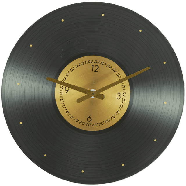 The novogratz 20" black glass musical notes record style wall clock makes a perfect addition to any home