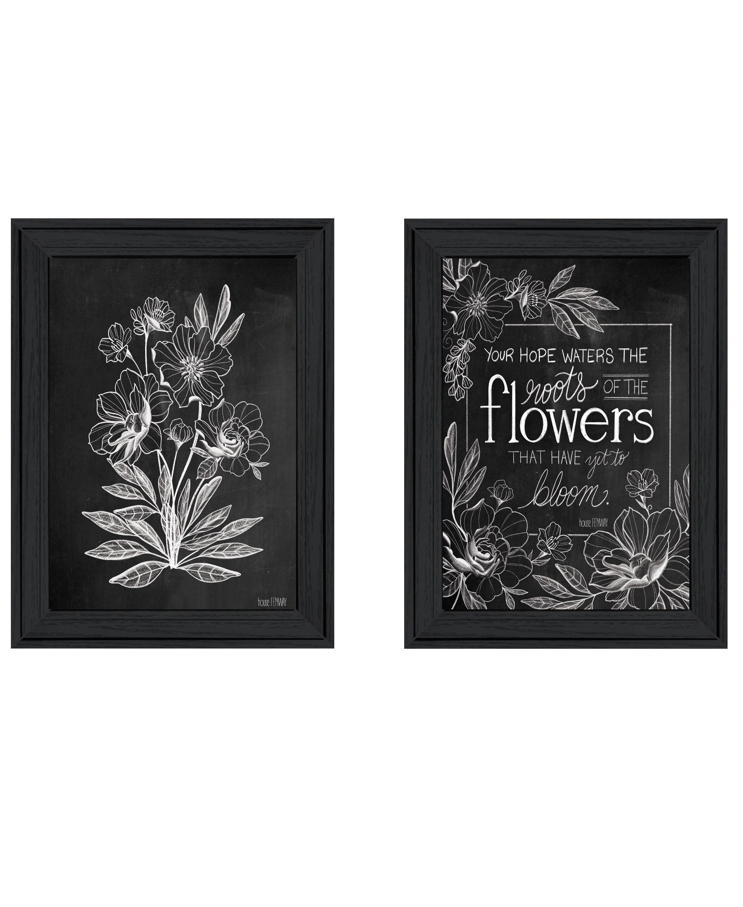 "Vintage Chalkboard Blooms" 2-Piece Vignette by House Fenway, Ready to Hang Framed Print, Black Frame