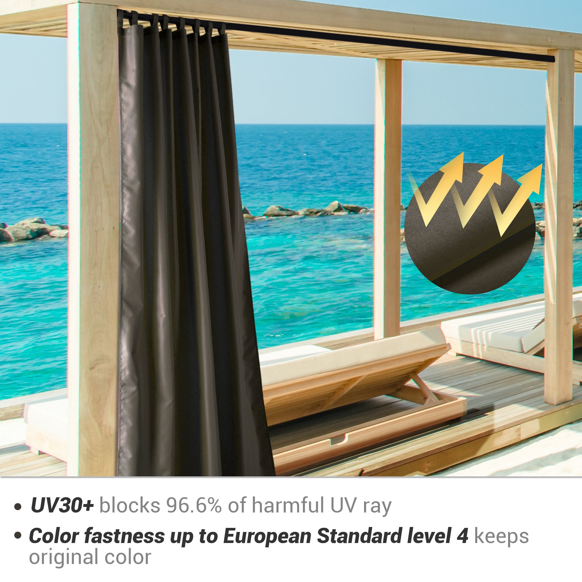 - UV 30+ Protection & Fade Resistance - Effectively blocks 96.6% of harmful UV ray; allows you to enjoy the outdoor view without worrying harmful sunlight; Color fastness up to European Standard level 4 keeps original color for a long time